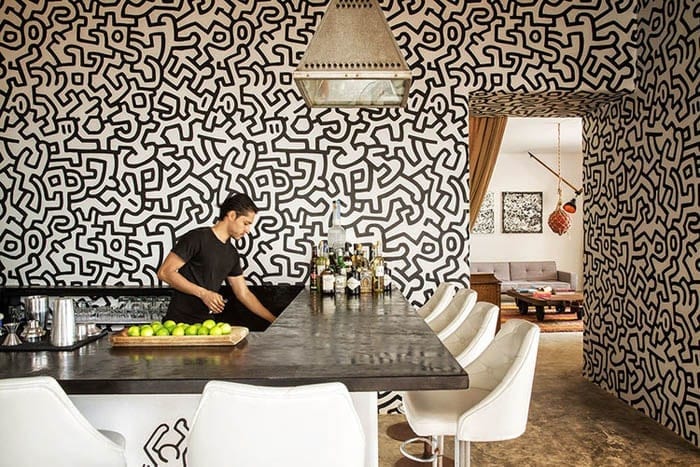 THE BAR cocooned in wallpaper imprinted with Keith Haring’s iconic black and white figures is both quirky and surprising.