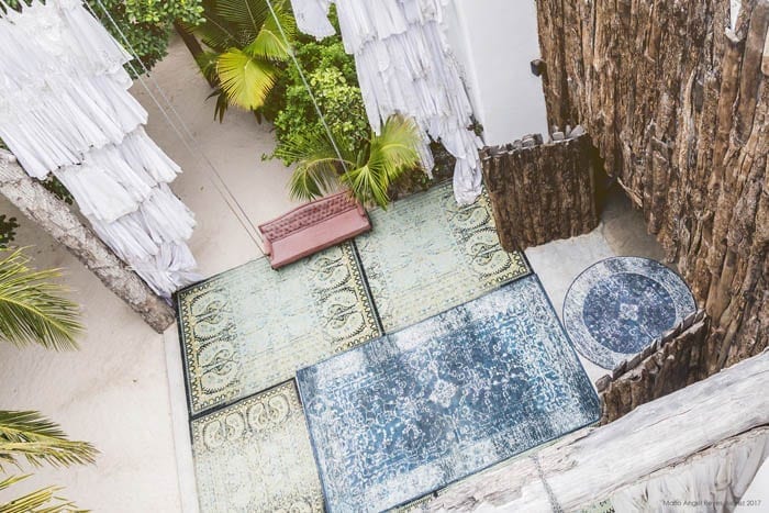 The walls, floors and outside area are displayed with a curated, museum quality collection of artwork, sculpture and decorative items, placing it above and beyond any of the other Tulum Hotels.