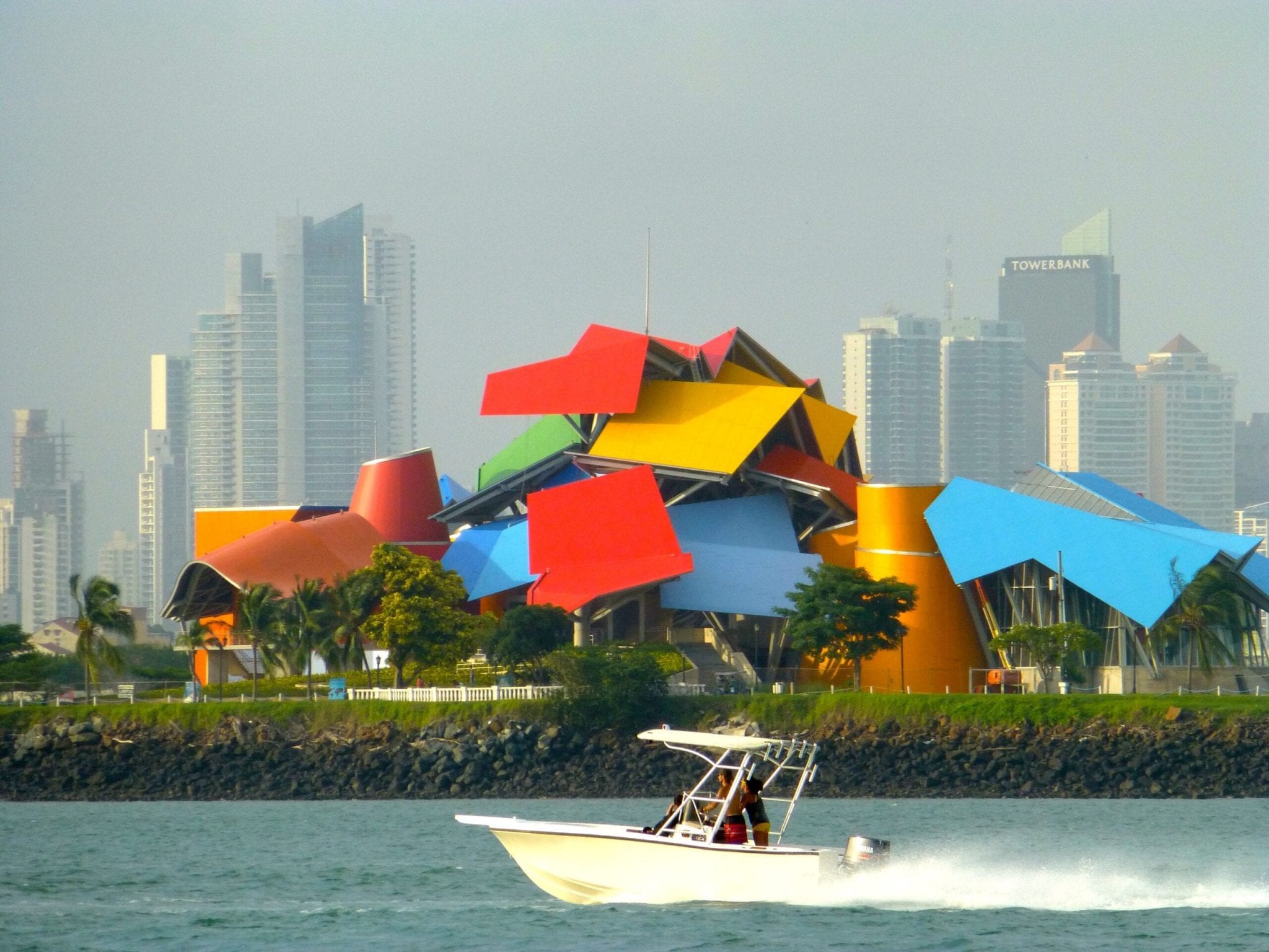 The design is a departure from his better-known style and consists of a number of “chambers” with high ceilings and roofs of primary colors being juxtaposed in challenging angles against the skyline. It has already garnered a lot of favorable press and positive reaction and will certainly be a tourist magnet generating revenue that will help to pay off the cost of the building — once it opens!. The Museum has great visibility both from land and from sea as vessels passing through the Panama canal sail very close to it.