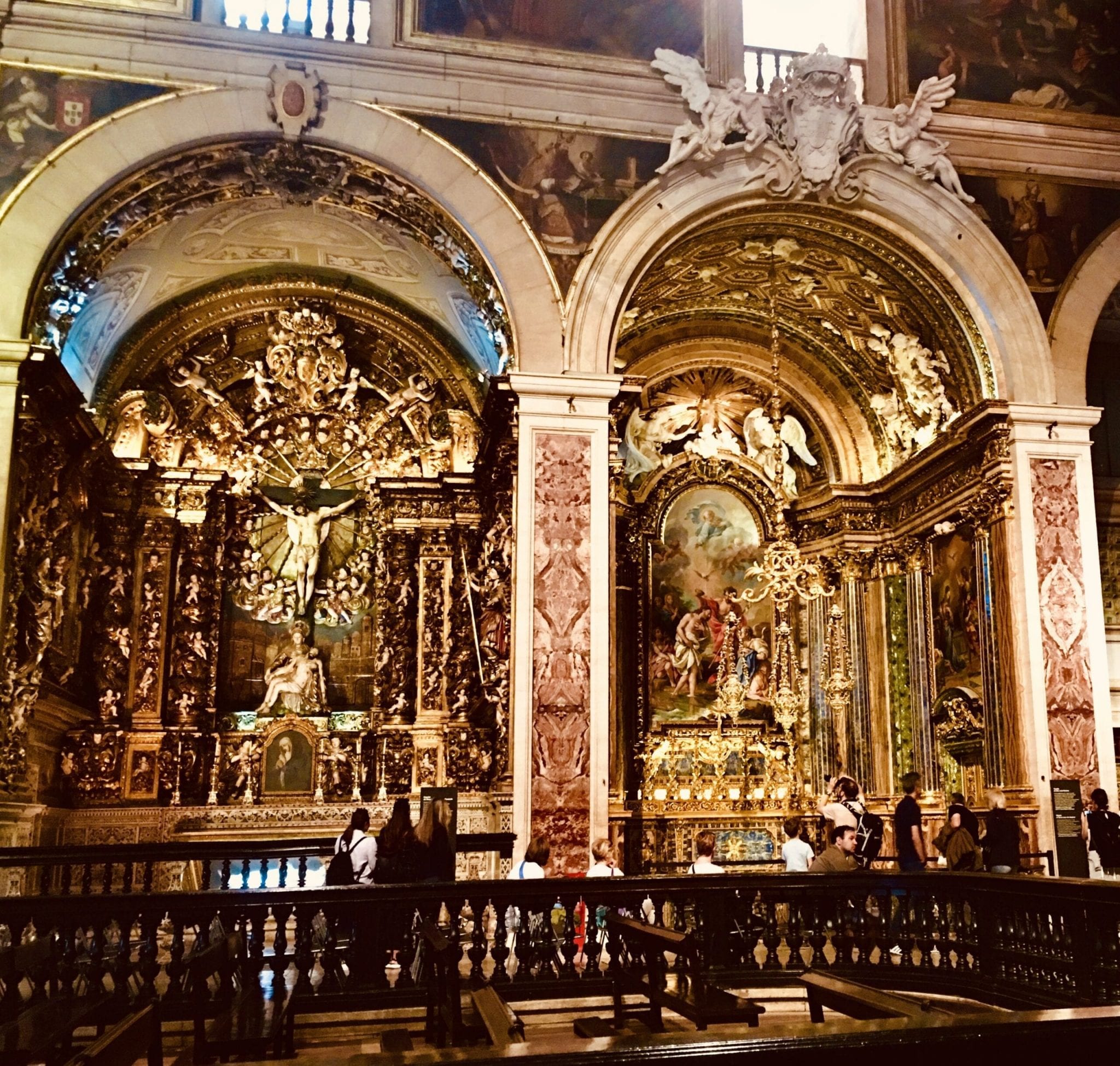 Up one of the hills that seemed effortless in the tuk-tuk, we arrived at the Sao Roque Church. Recently restored, the whitewashed exterior gave no hint of the interior opulence. It is a 16th-century Baroque design, a masterpiece, described as one of the most beautiful churches in Portugal — and it truly was spectacular. The chapels and walls were ornately covered in layer upon layer of gold and silver leaf that dazzled the eye. Meticulously designed polychrome marble lined the walls, domed ceilings, and floor. The walls were further embellished with precious stones of lapis lazuli, amethyst, alabaster, and agate. What makes this Church extraordinary is that the most ornate of the Chapels had originally been assembled in Rome, to be blessed by the Pope, then disassembled and shipped to Lisbon on three separate ships, before being re-assembled inside the Church. The exquisite paintings of biblical imagery are in fact not paintings but detailed mosaic works of art further enhancing the extravagance of the decorations. I sat quietly in one of the pews, trying to take it in… but it was soon time to move on as there was much more to see.