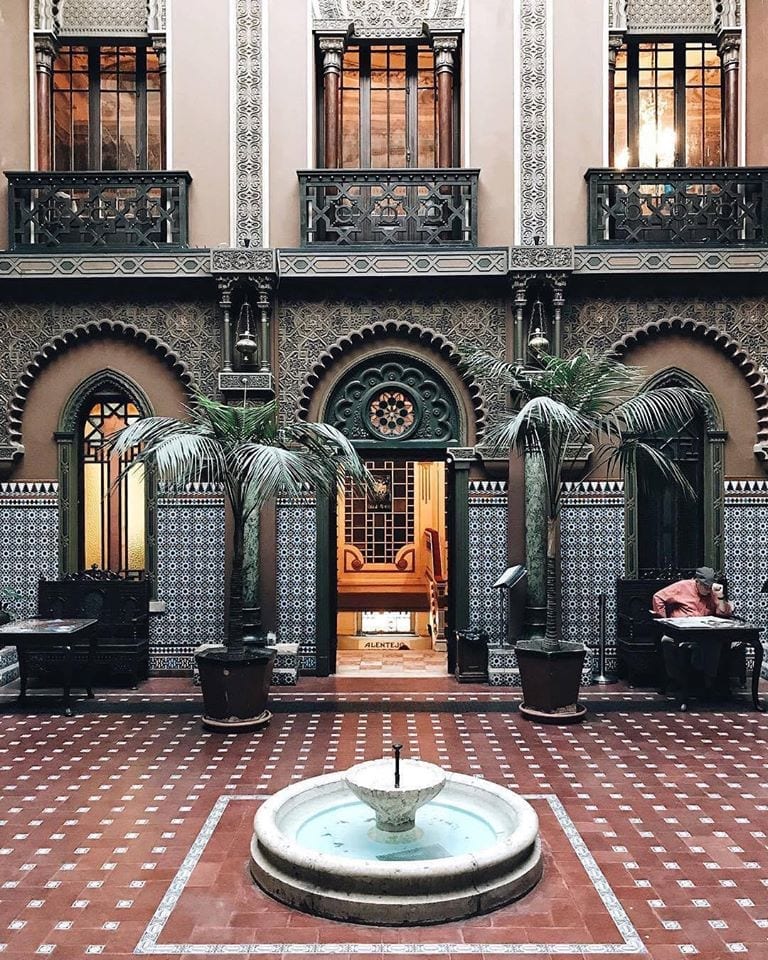 After walking through the building, I paused for a cup of coffee at the caf;e inside the palace and thought about what I had just experienced. It was amazing: a marriage of Moroccan and European Old World style, with modern shops. A combination that should not work, but in the Palacio Alverca, now known as the Embaixada, it does.