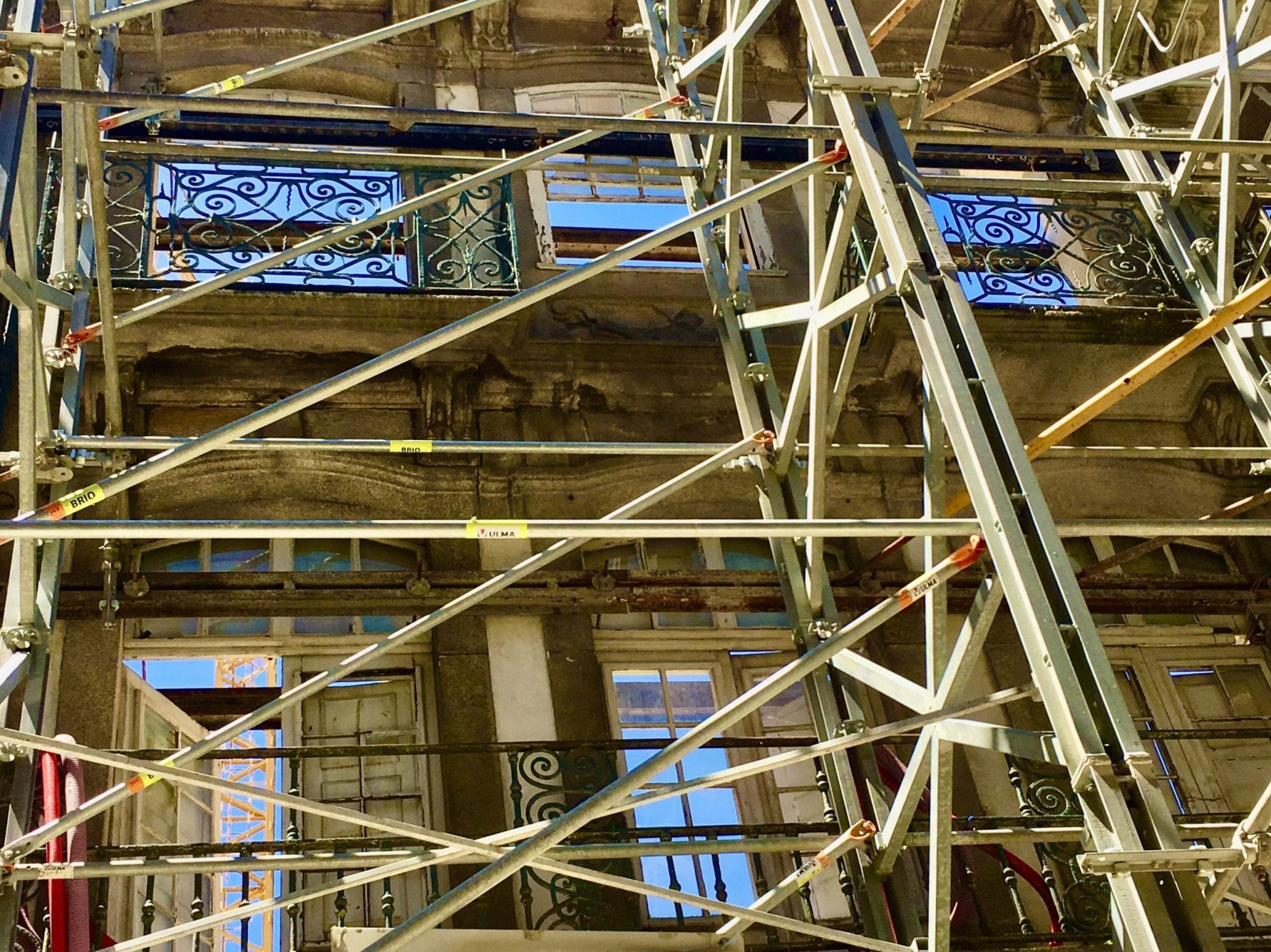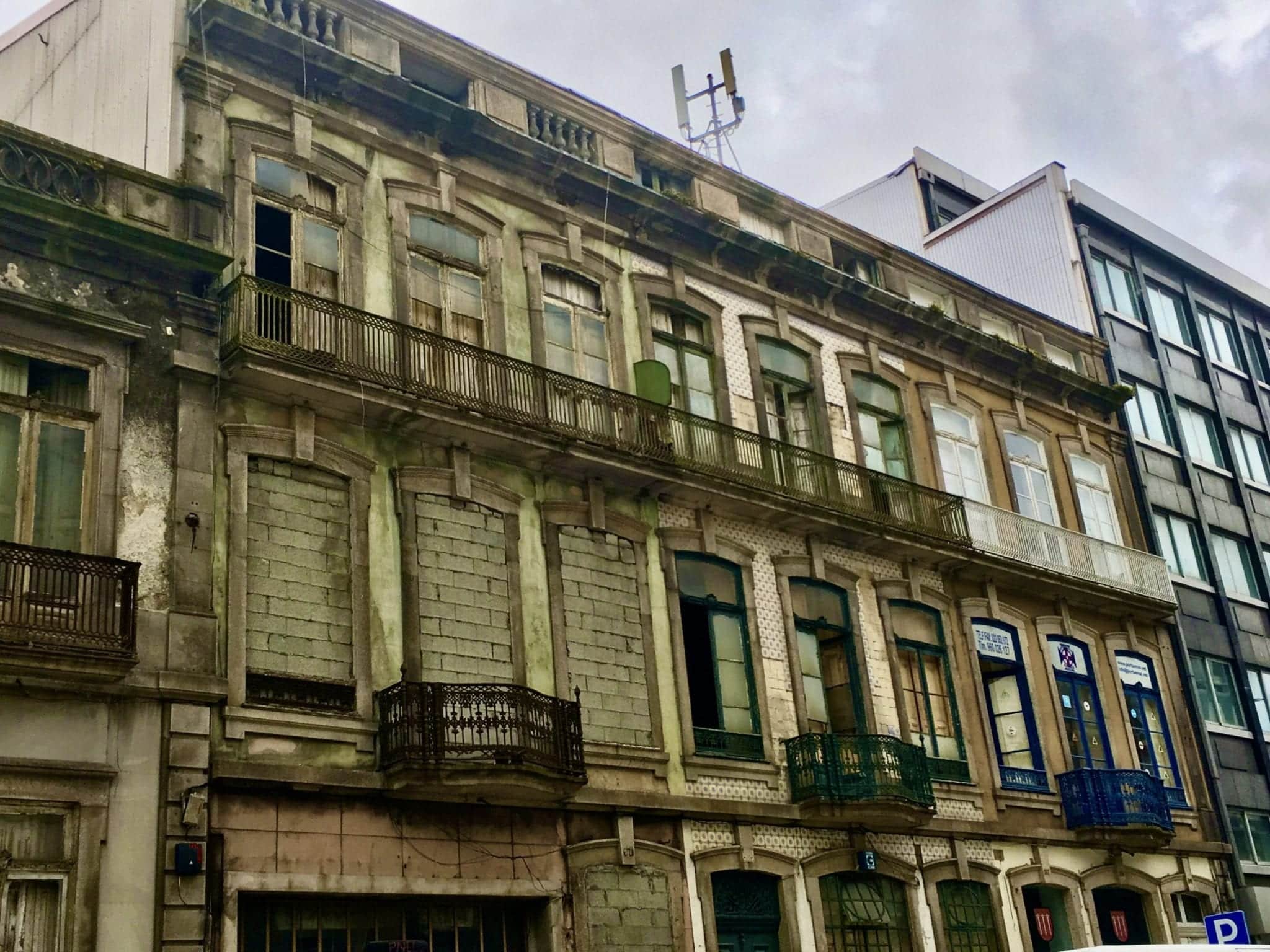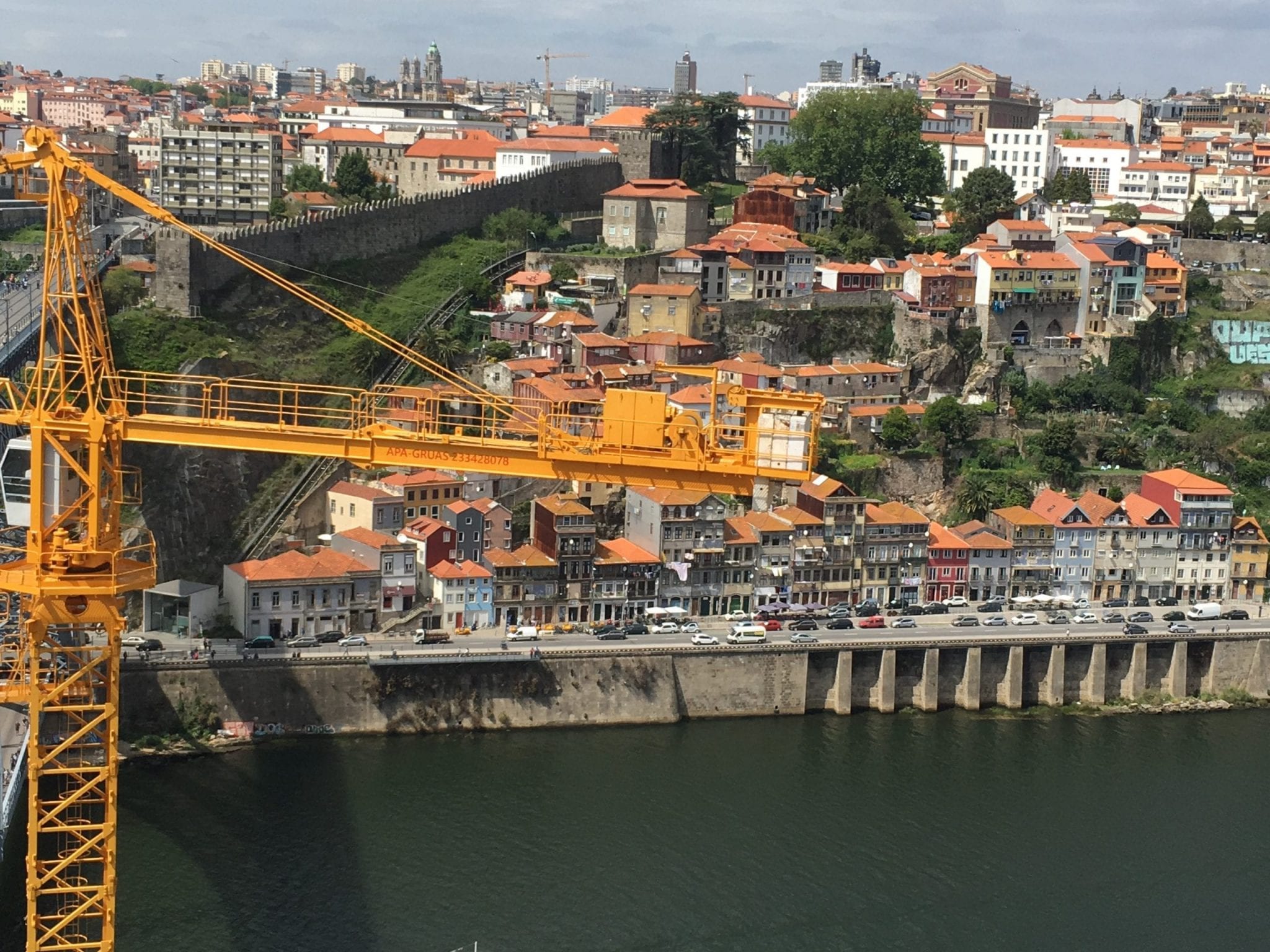There are cranes everywhere — enormous cranes lifting huge concrete blocks of restored period facades. If cranes are an indication of a vibrant economy, then Porto is on a tear. Every time I pointed the camera to take a photo, there was a crane in the image. It reminded me of those people who scoot into the background of selfies and make finger gestures. I could not keep them out! They were lifting huge concrete facades, ready to be applied to a building, restoring it with period details. Let the crane just drop one of those chunks of concrete and the impact would wipe out any humans, like crushing an ant!