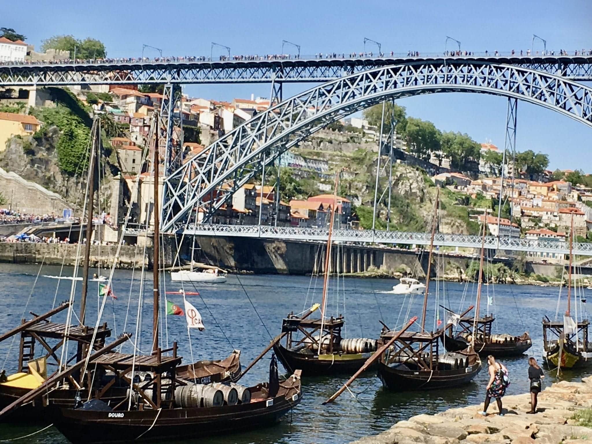 The flat bottom boats, dating from the 17th Century, when they were designed to carry wine barrels from the vineyards of the Douro Valley to wine cellars in Vila Nova de Gaia, still ply up and down the river – now they mainly ferry tourists.