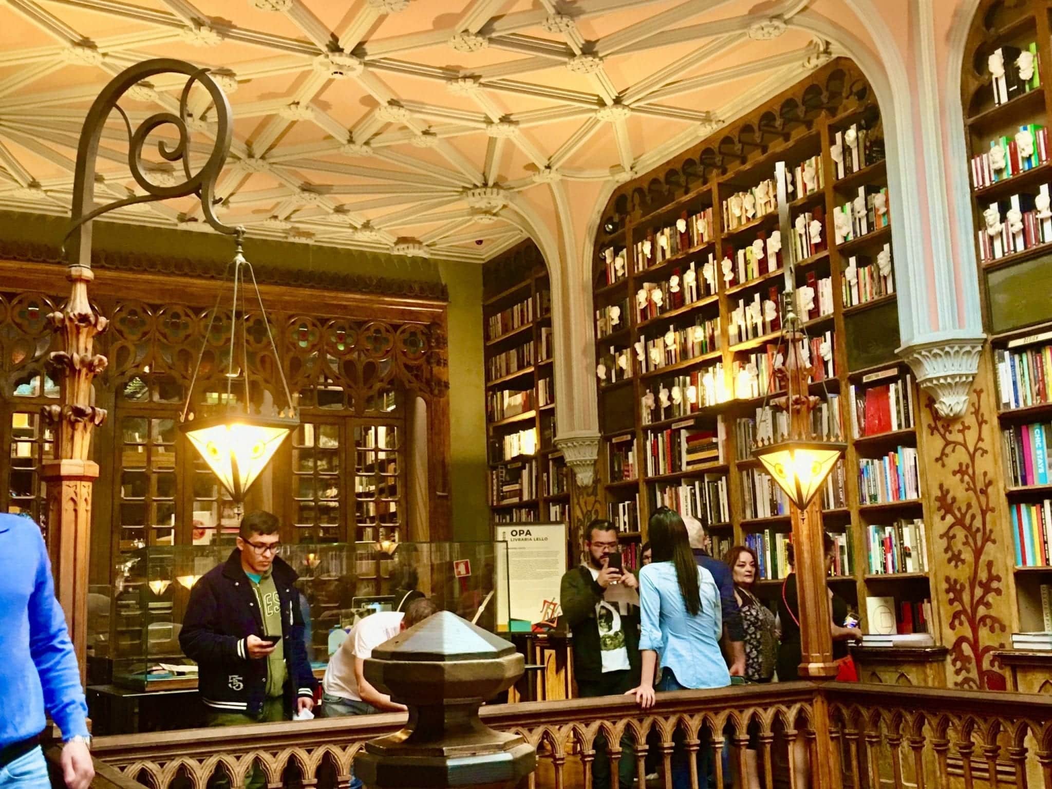 Each day, 4,000-5,000 people stand in line waiting to gain entrance to one of these illustrious bookshops! The above scene takes place in Porto, Portugal — and the bookshop is Livraria Lello or Lello Bookshop. Lello is not a museum or a castle: it is a bookshop, albeit a beautiful one resembling a cathedral with a distinct provenance.