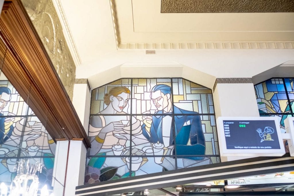 The interior is palatial with many fine art deco details still extant from its original incarnation in 1936 when it was designed to house the elegant art deco cafe, patronized by the cafe society of its day, a trend especially popular in Portugal.