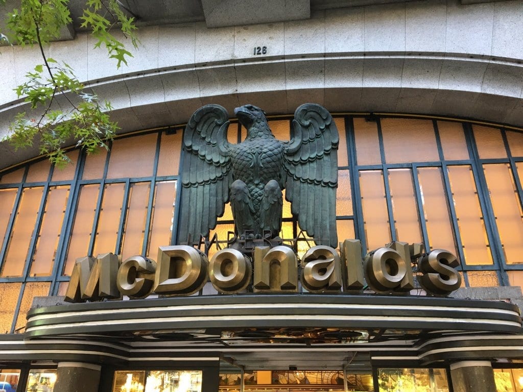 The original iconic bronze eagle logo from the Imperial Cafe, designed by the famous Portuguese sculptor Henrique Moreira remains above the door at the front entrance, observing everyone coming and going. If you look carefully, the name ‘Imperial Cafe’ can still be read behind the golden signage of McDonald’s.