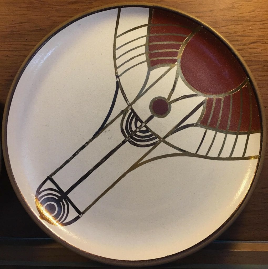 The plates above were ordered by Frank Lloyd Wright, the renowned “Prairie Style” architect, who specified custom-designed, hand-painted Heath ceramic dinnerware for some of his upscale clients.
