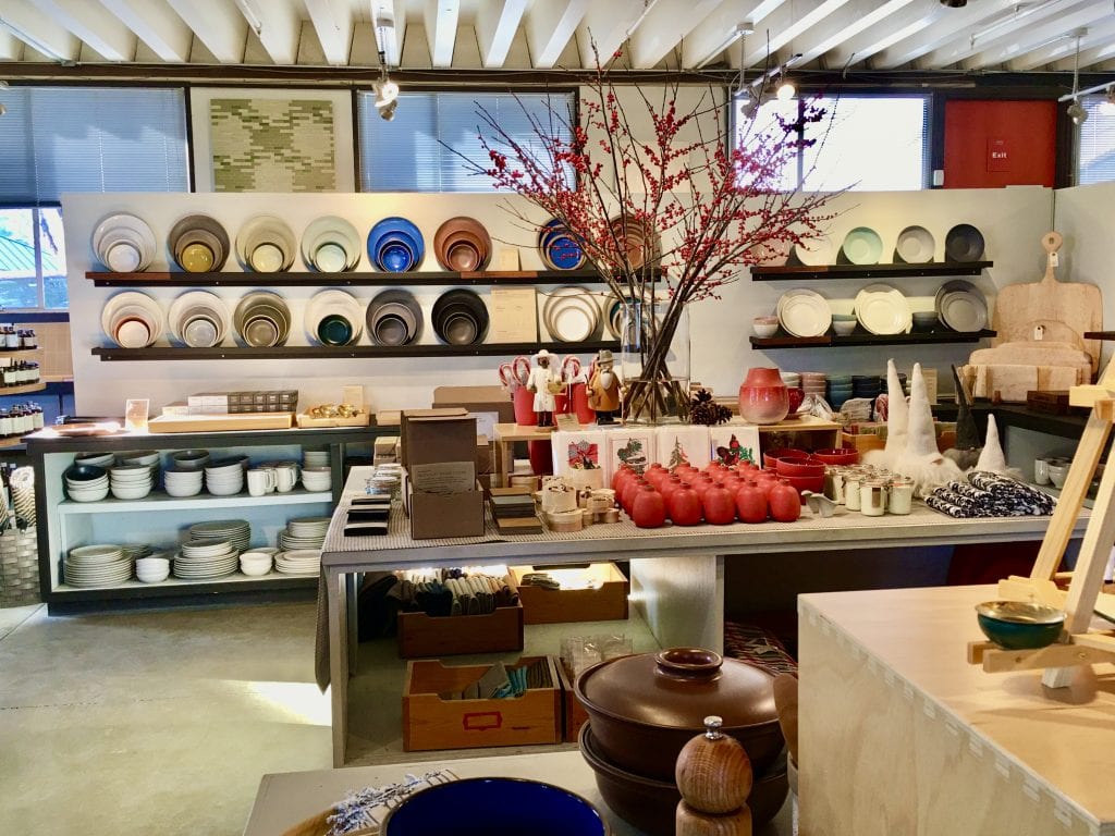 Feeling the need to have flatware that was compatible with the dinnerware, Petrovic and Bailey worked with Sherrill manufacturing, the last remaining flatware manufacturer in the US, to design Heath Flatware to go with the original “Coupe” design dinnerware (although it blends well with all the dinnerware designs). Having their own flatware enhances the table settings that are displayed throughout the showroom, too. And speaking of the showroom display, it is well-curated, uncluttered, and color-coordinated — Scandinavian in the way it is presented.