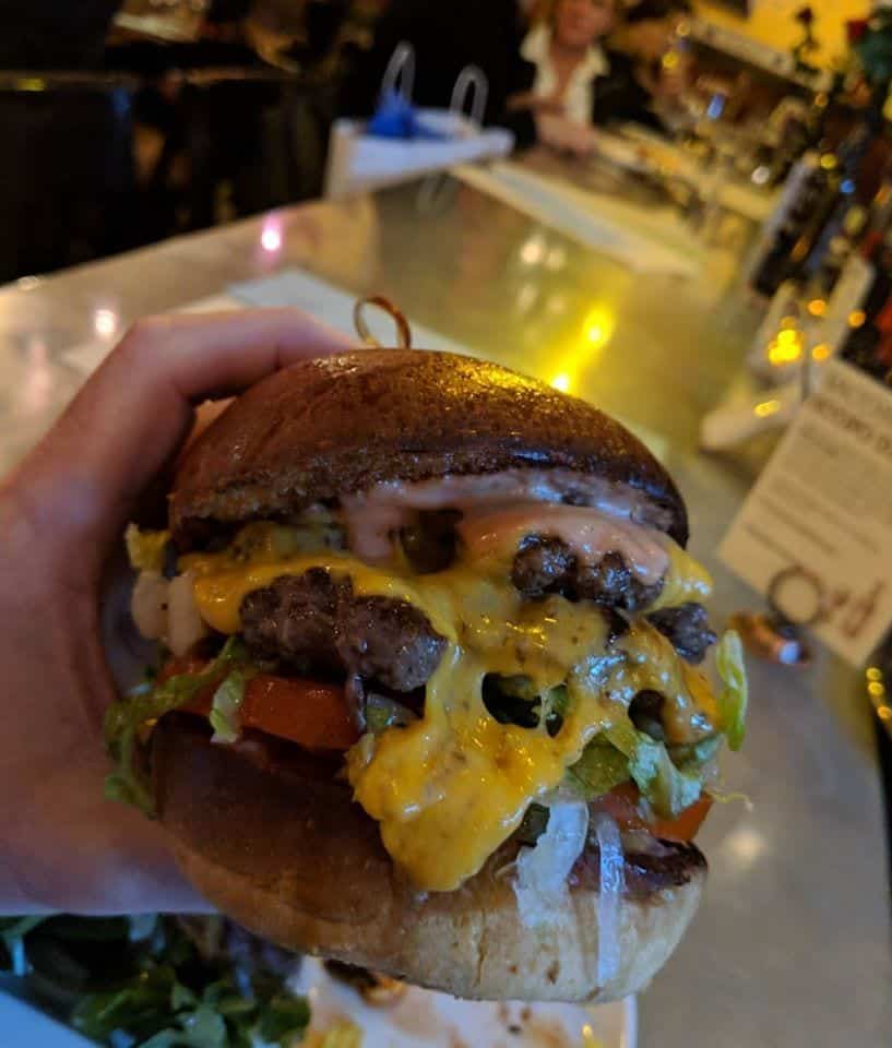 Everything at Scopo Divino has been well researched and there is a reason the hamburger, on its own, has won its share of awards and has been described as “a burger to rival all others, one of the best in the Bay Area”. It embodies traits shared by every menu item: each element of the burger is exceptional, from the special brioche bread roll to the way it is buttered, toasted, and seasoned, then layered, with its double patty, atop other ingredients and offered with curly fries or a scrumptious side salad. In 2021, it won the Bergey Burger award from 48 Hills, named after its namesake Jefferson Bergey, to honor him after his 100th performance at Scopo Divino on Monday nights.