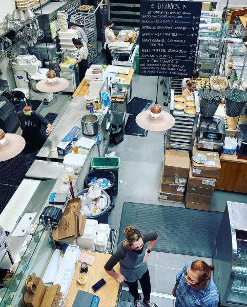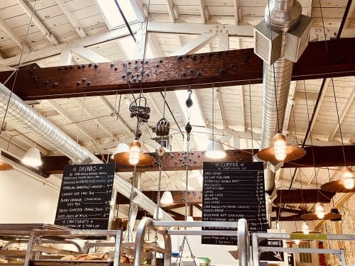 Fortunately, at the time of my first visit, I took photographs. They captured the bakery pre-pandemic when customers were able to walk up to the counter, view the temping assortment of home-baked products, place their order, and leisurely enjoy a cup of coffee, a pastry, or a light meal in the restored building.