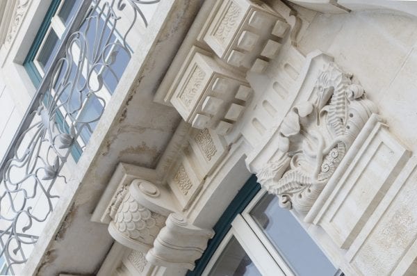 The 1908 Lisboa building is the anchor of this newly revivified space. Designed a little more than a century ago by one of the leading architects of the day, Adaes Bermudes, as luxury apartments, it received the Valmor Design Award — one of the most coveted architectural awards of its day. Fast-forward 188 years and another architect, Pardal Monteiro Architects, would revisit Adaes Bermude’s meticulous drawings in order to restore the property to its former grandeur and prevent it from disappearing into oblivion, as has happened with far too many heritage buildings in Portugal.
