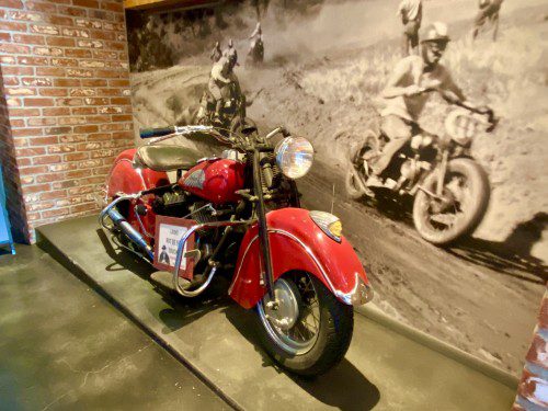 Today, the station’s new owners succeeded in locating Eddie’s 1947 Indian Chief motorcycle, and after coaxing the owner into selling it to them, have featured it prominently inside the showroom.